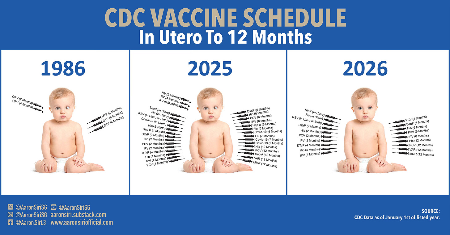 1986—2025: Number of vaccines administered explodes to 78 - and rising - from birth to two years of age. Autism diagnoses explode right along with them.