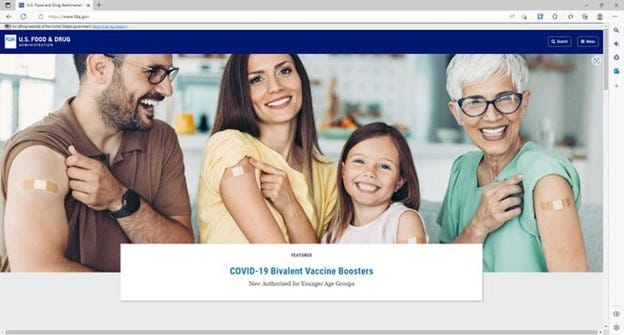 And as for the FDA, it needs to stop promoting vaccines! Its job is to critically and objectively review the data submitted by the pharma company to license a vaccine. It cannot do that if it acts as a cheerleader for the vaccine. Yet, here is the homepage of the FDA website for the bivalent booster that is not yet even licensed: